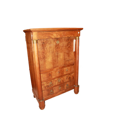 Eleganter französischer Sekretär im Empire-Stil aus der zweiten Hälfte des 19. Jahrhunderts, gefertigt aus Birkenholz....