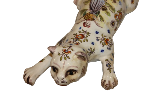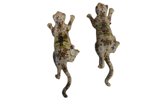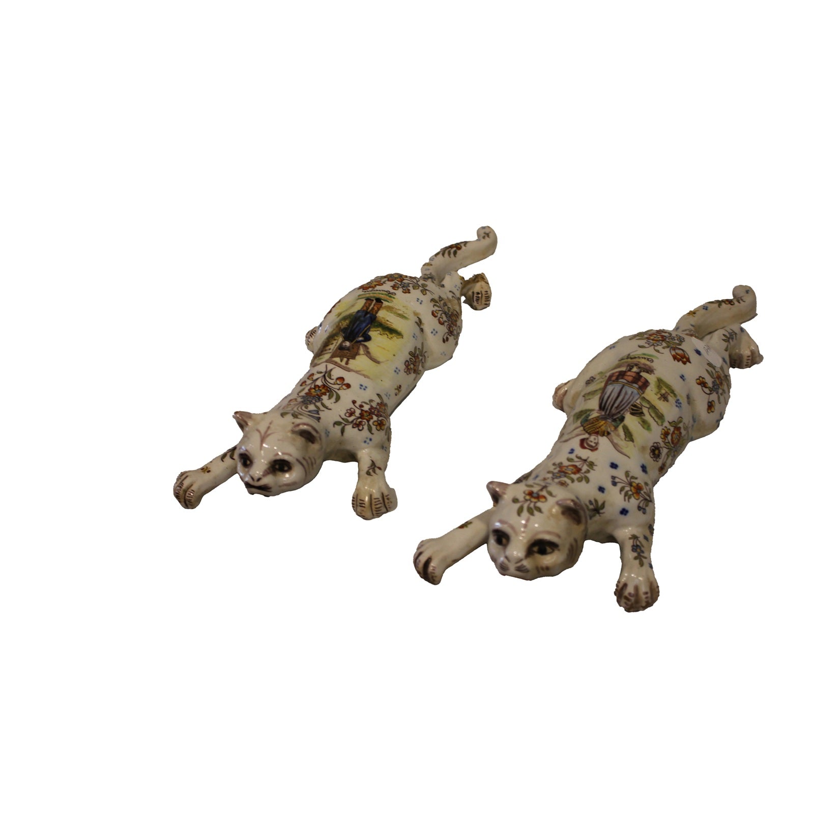 Paar französischer Porzellanfiguren mit Katzenmotiven – Frühes 20. Jahrhundert