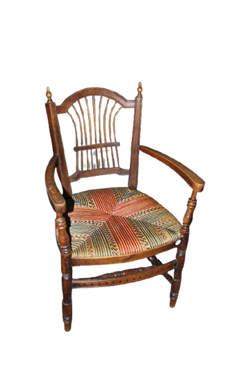 Authentic French rustic country armchair dating to the late 19th century, crafted in solid walnut...