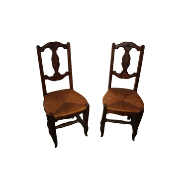 Charming set of 6 French Provincial chairs from the late 1800s, crafted in solid walnut....