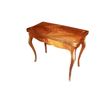 French Card table from the late 1800s, Louis XV style, in solid walnut. Features an inlaid...