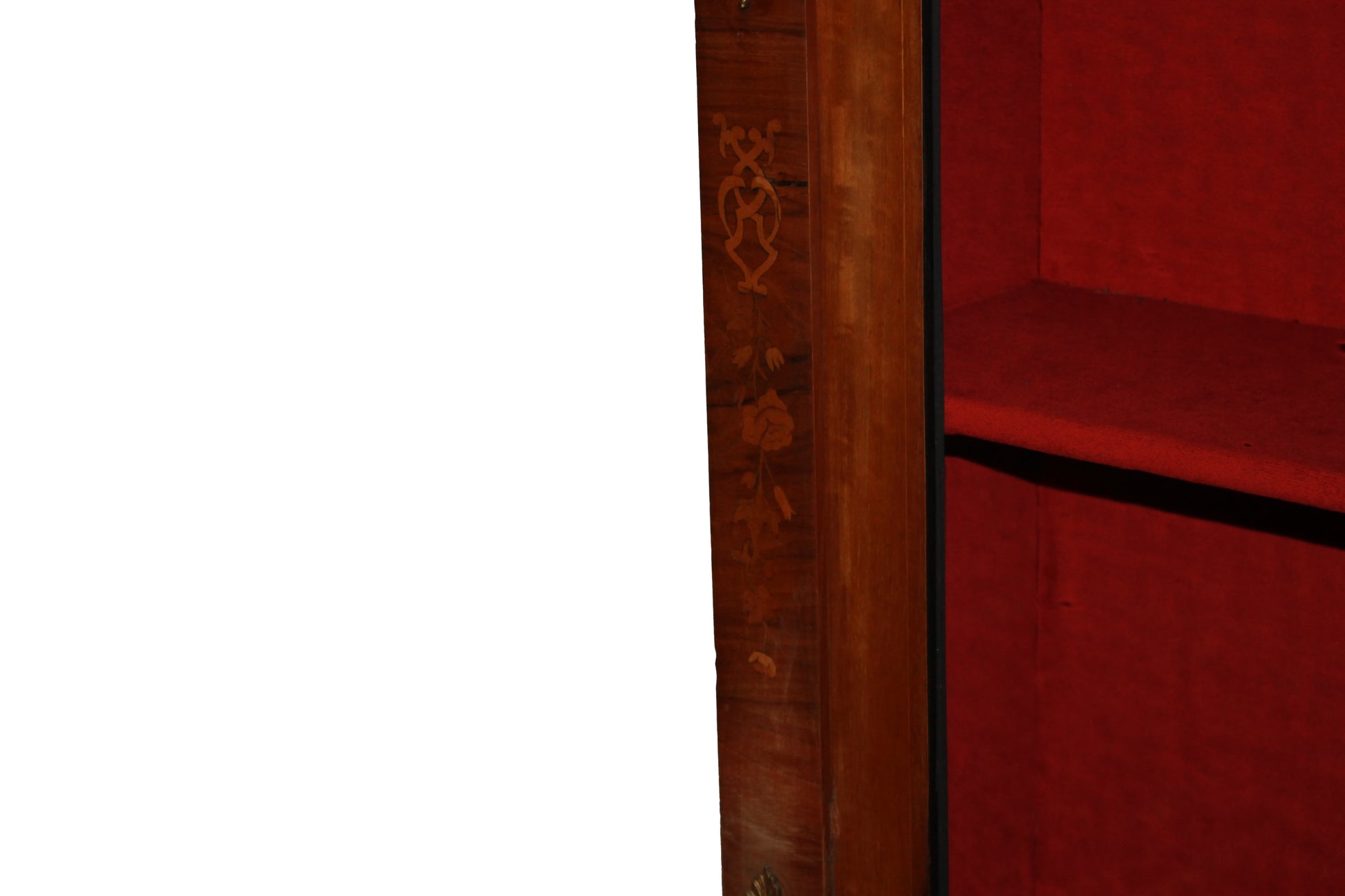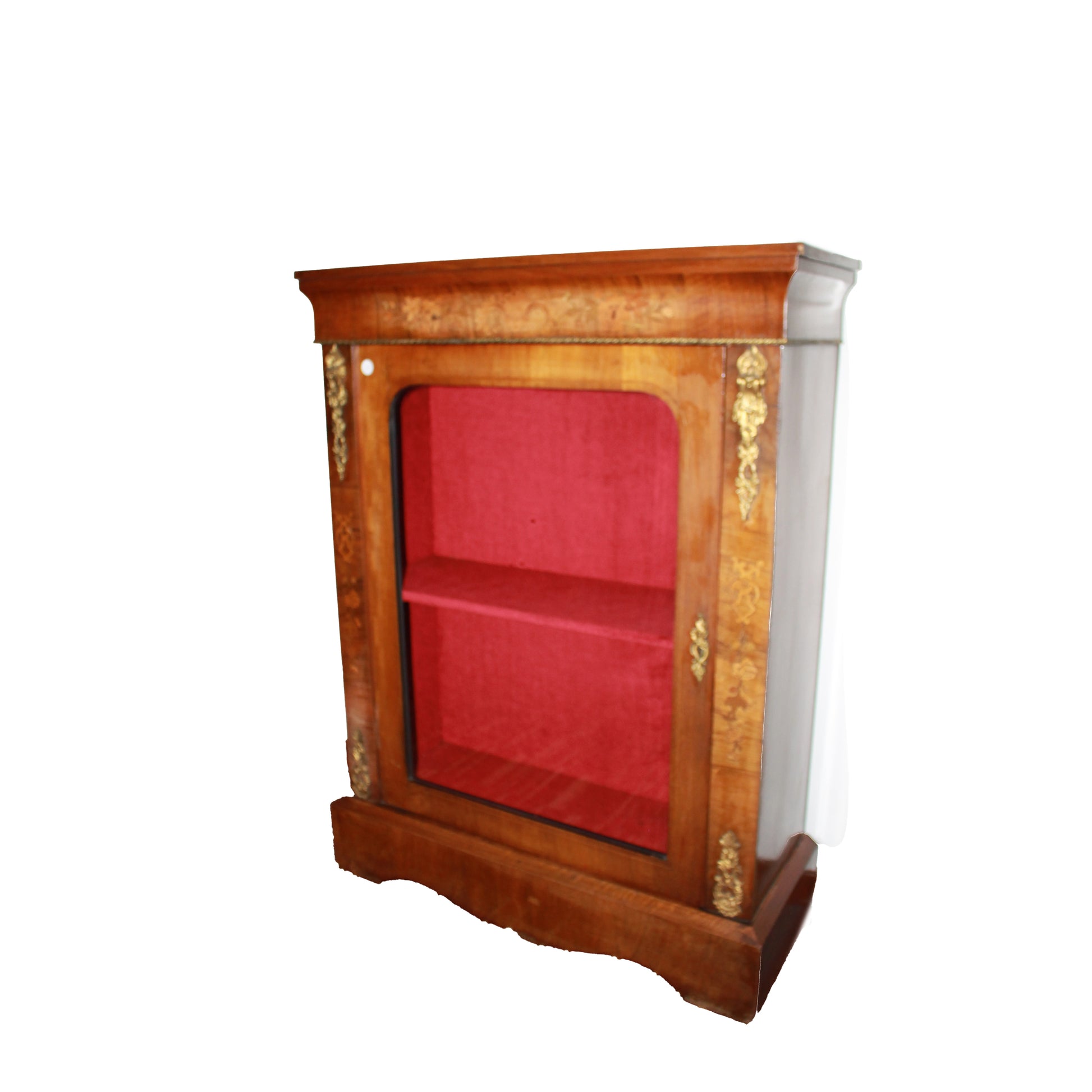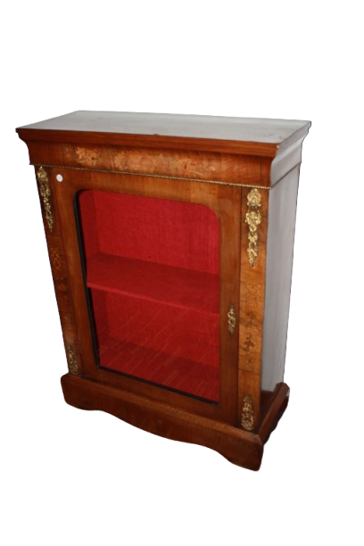 Showcase in walnut briar from the Victorian era , with one door with inlays and gilded bronzes .