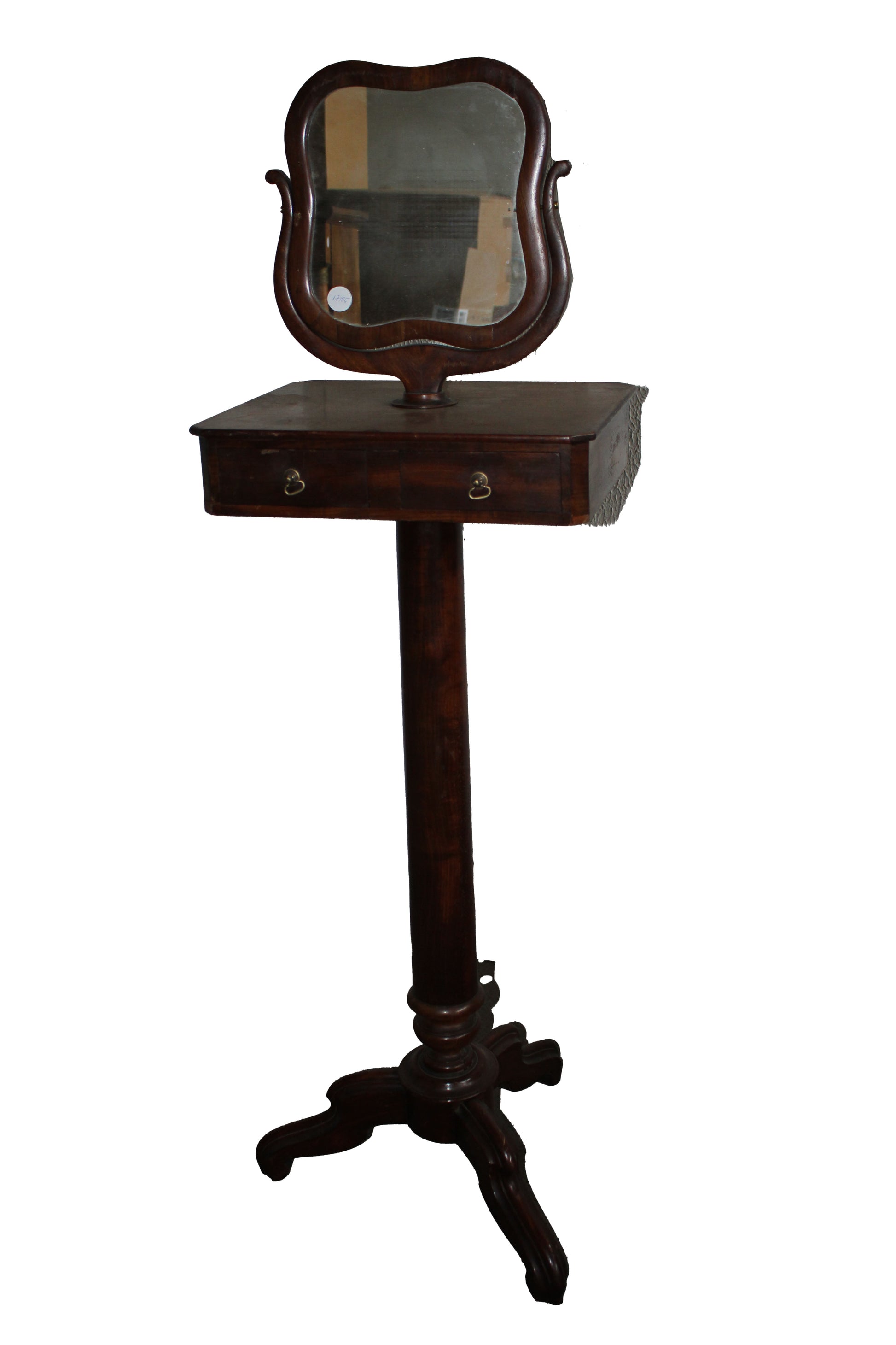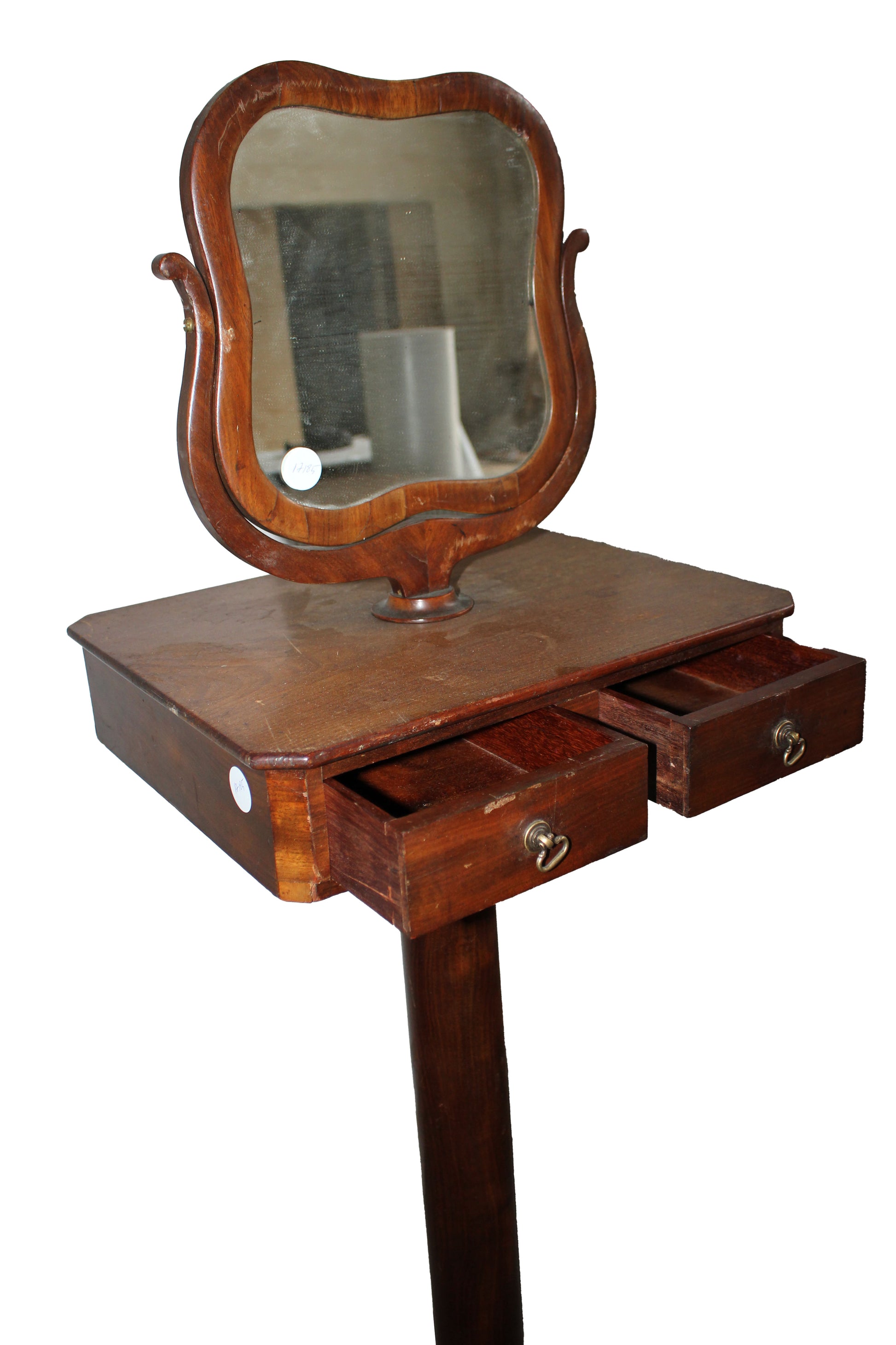 Elegant French gentleman’s standing toilette table dating to the second half of the 19th century, crafted in fine mahogany and inspired by the refined Directoire style. This sophisticated antique piece was traditionally intended for beard shaving and personal grooming. Its slender proportions and sober classical lines reflect the neoclassical taste typical of the Directoire period, making it both a functional and decorative item of great charm.