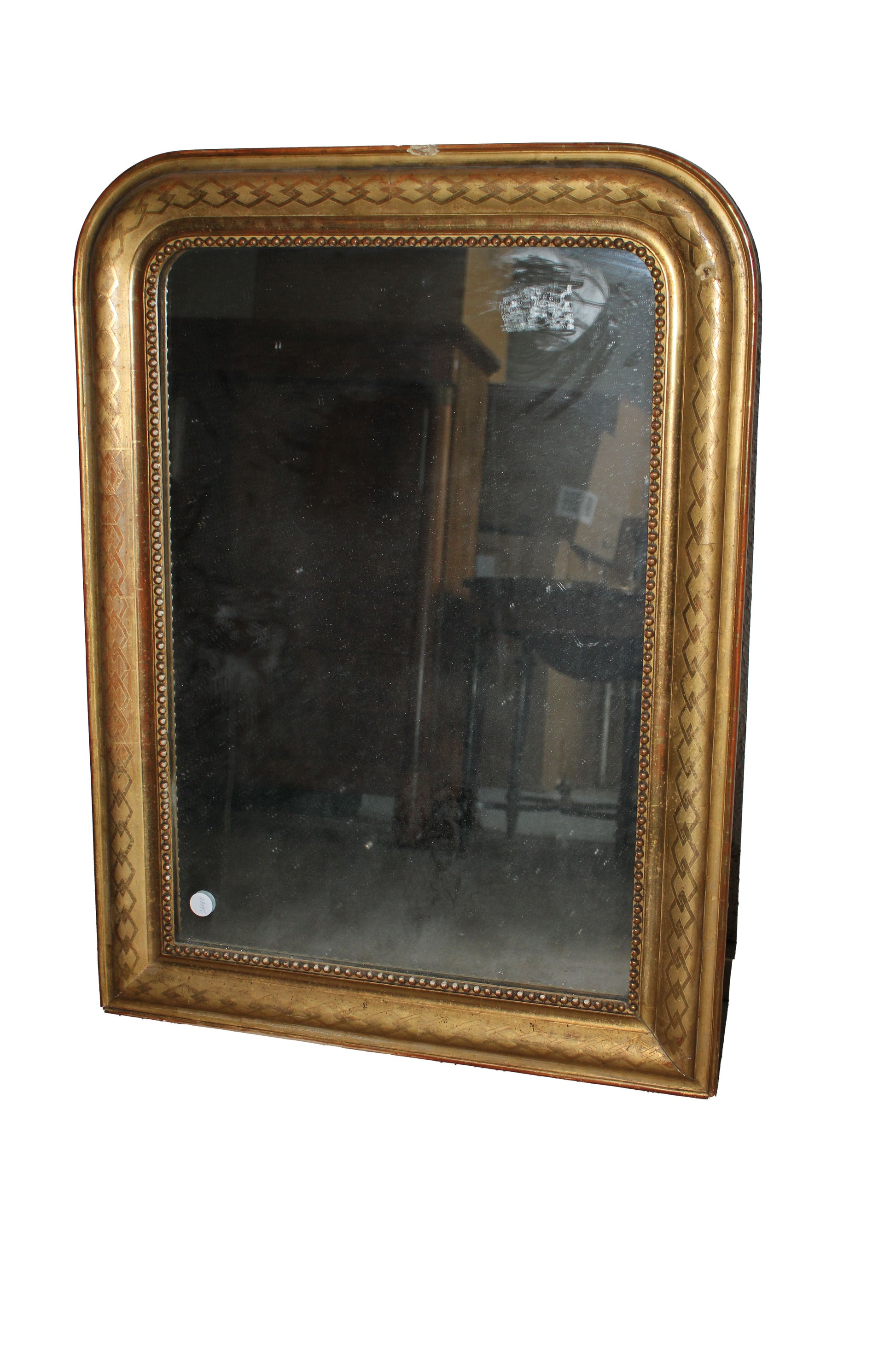 French Giltwood Mirror, Rectangular with Rounded Upper Corners, Late 19th Century