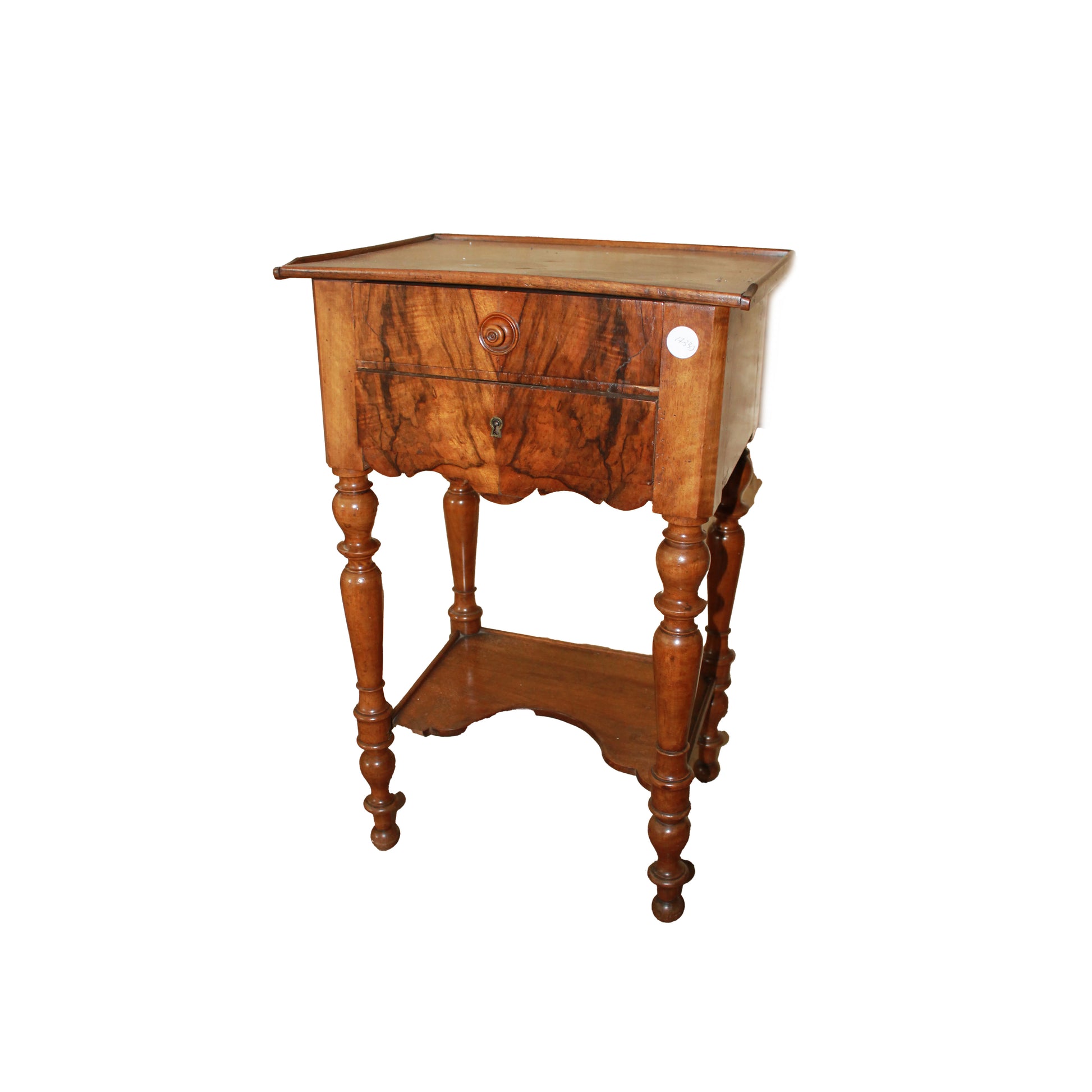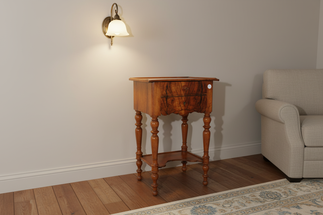 French Louis Philippe Bedside Table in Figured Walnut with Two Drawers – Late 19th Century