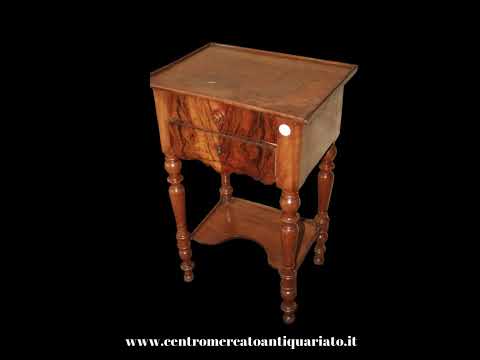 It features two small drawers and stands on four legs connected by a lower shelf, providing both stability and practical storage. A charming antique piece, perfect for classic bedrooms or refined interiors.