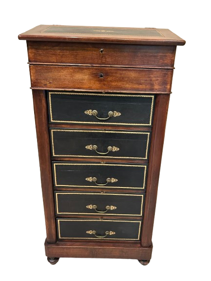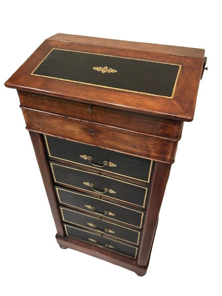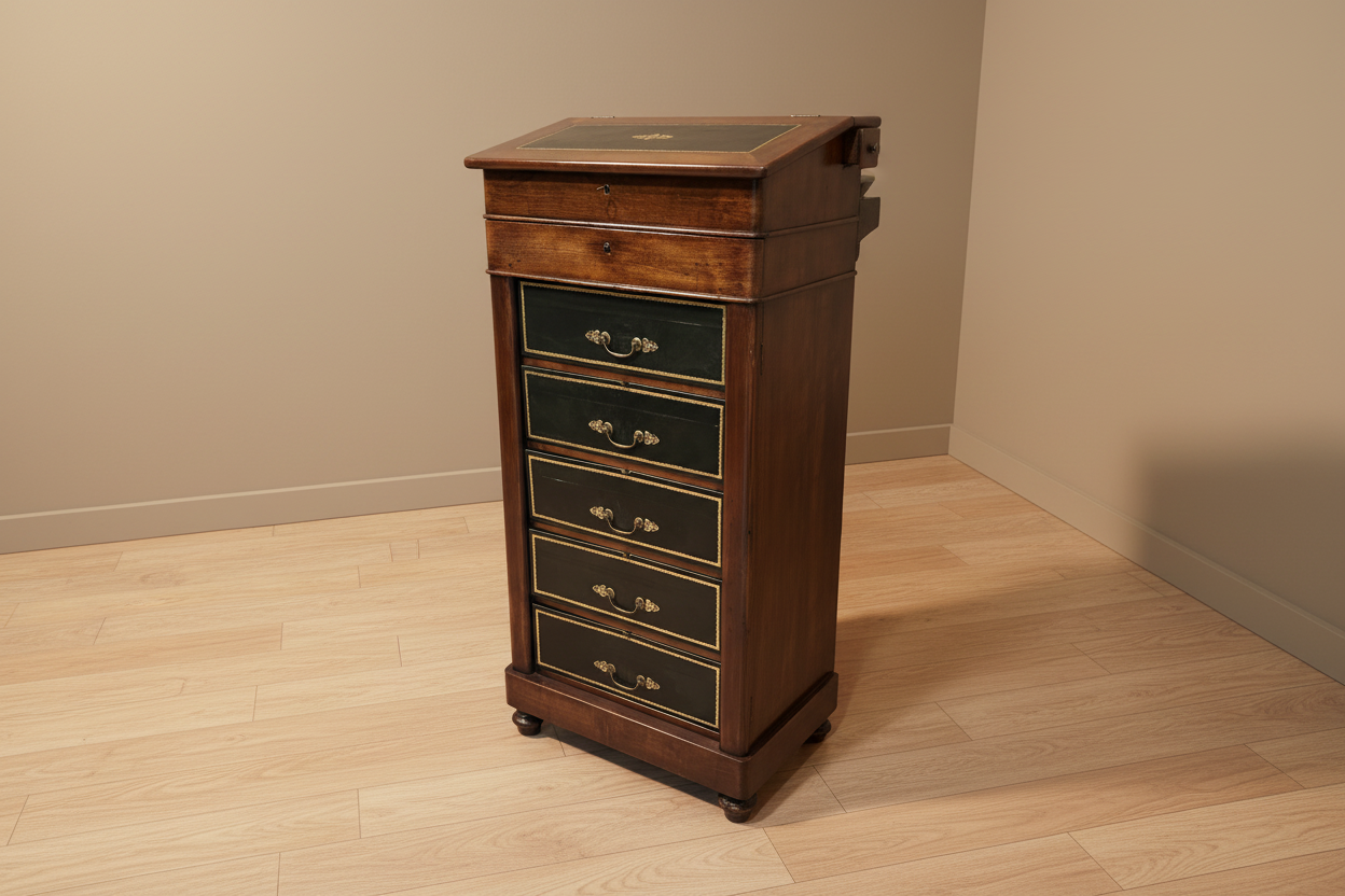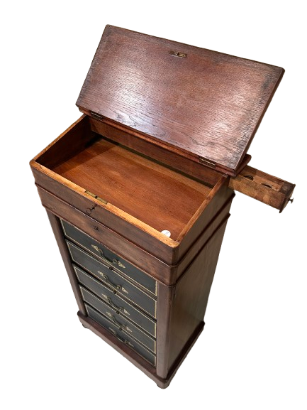 Cartonnier Français en Acajou avec Pupitre et Dessus en Cuir – Seconde Moitié XIXe siècle