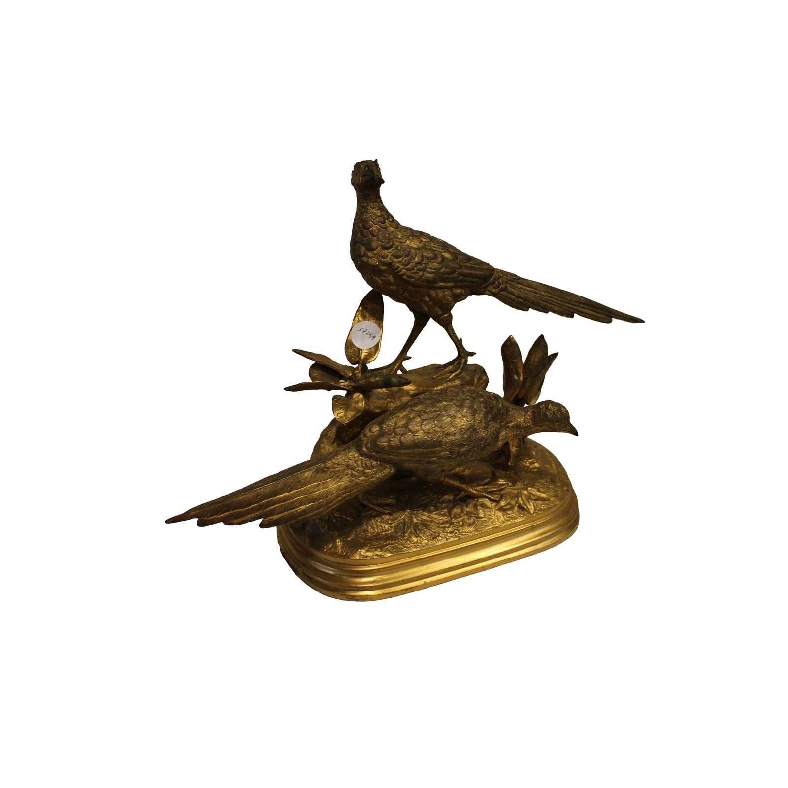 Sculpture française Art Nouveau (Liberty) en métal doré – Paons, fin XIXᵉ siècle