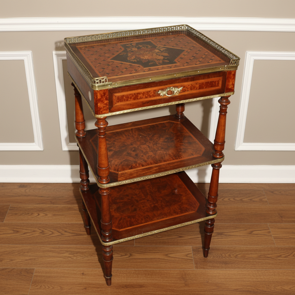 Table Étagère Française Napoléon III – Palissandre et Racine d’Orme, Fin XIXe Siècle