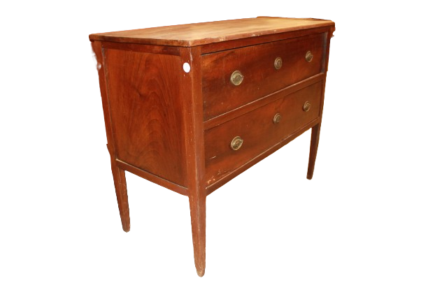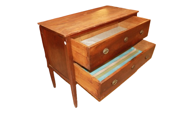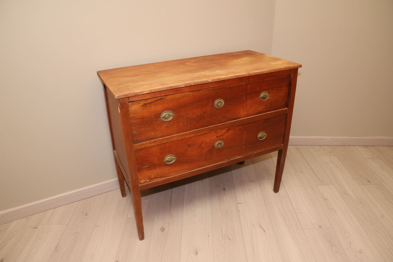 Cassettone italiano della seconda metà del 1700 stile Luigi XVI in legno di noce. Presenta 2 grandi cassetti con maniglie in bronzo e gambe a piramide rovesciata.