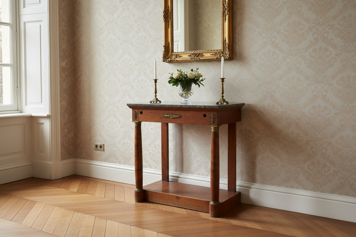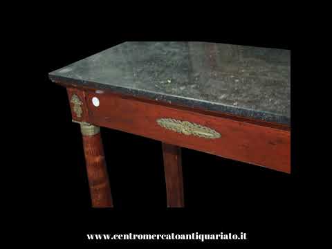 Consolle Francese Stile Impero in Mogano con Marmo e Bronzi