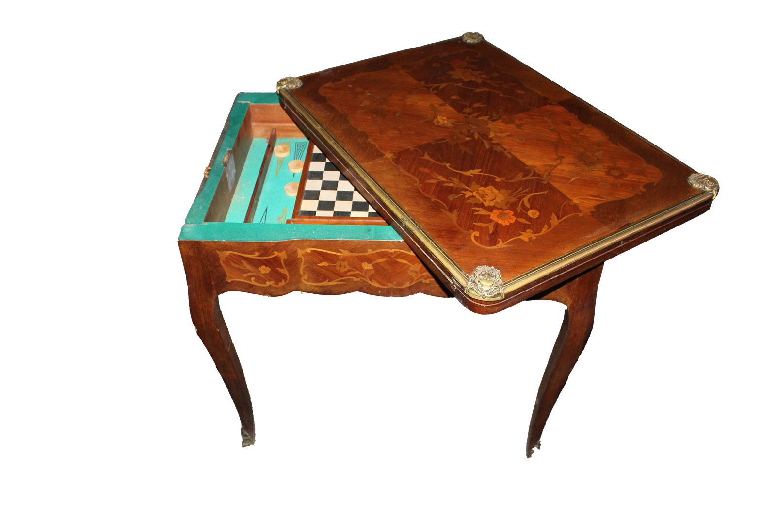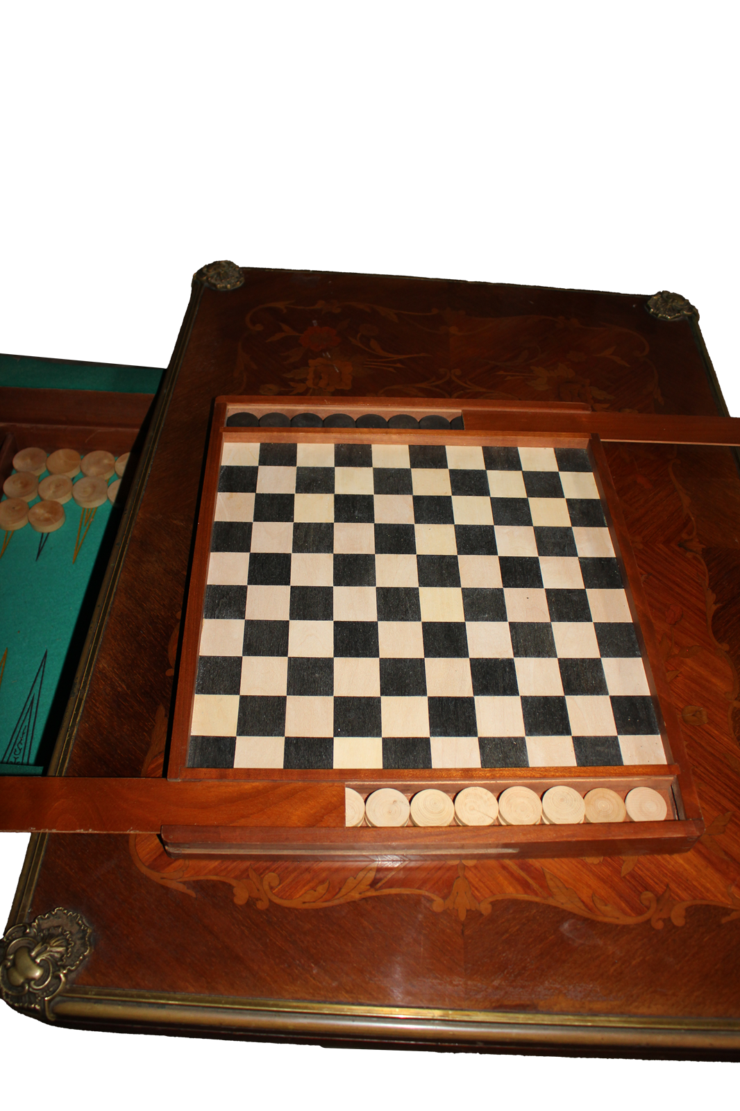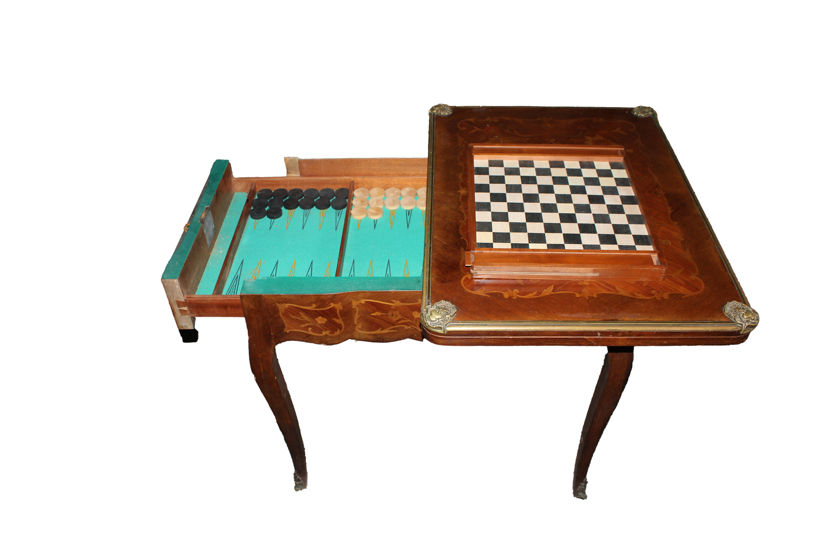 Il piano, con apertura a libro, presenta il classico panno verde ed al suo interno rivela il gioco del backgammon, finemente intarsiato, ed una dama. Un pezzo di grande fascino e versatilità, perfetto per aggiungere un tocco di raffinata eleganza francese a qualsiasi ambiente.