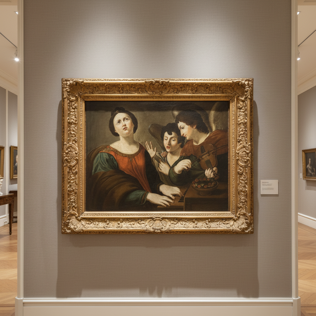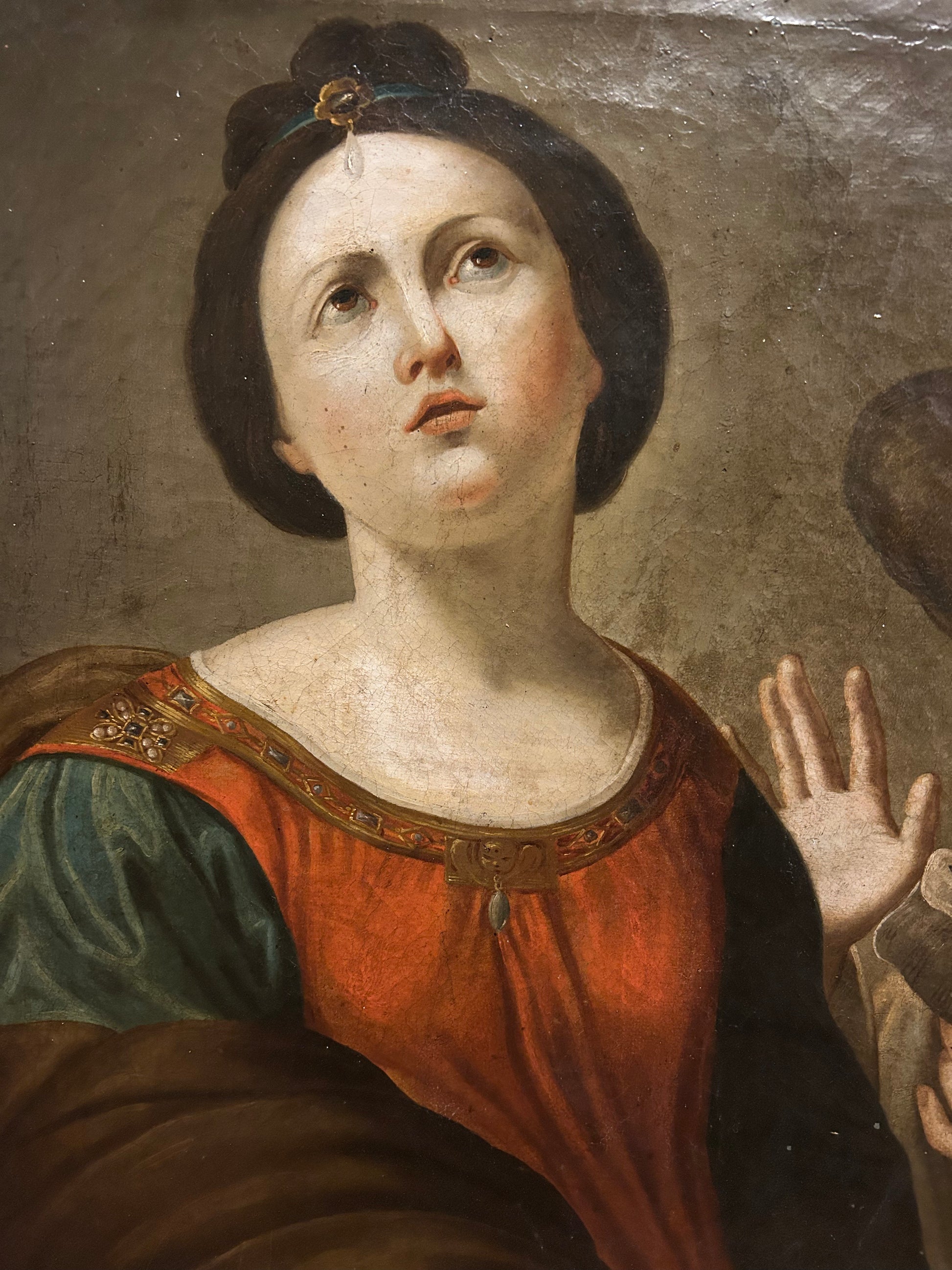 Olio su tela del XVII secolo raffigurante Santa Cecilia, patrona della musica