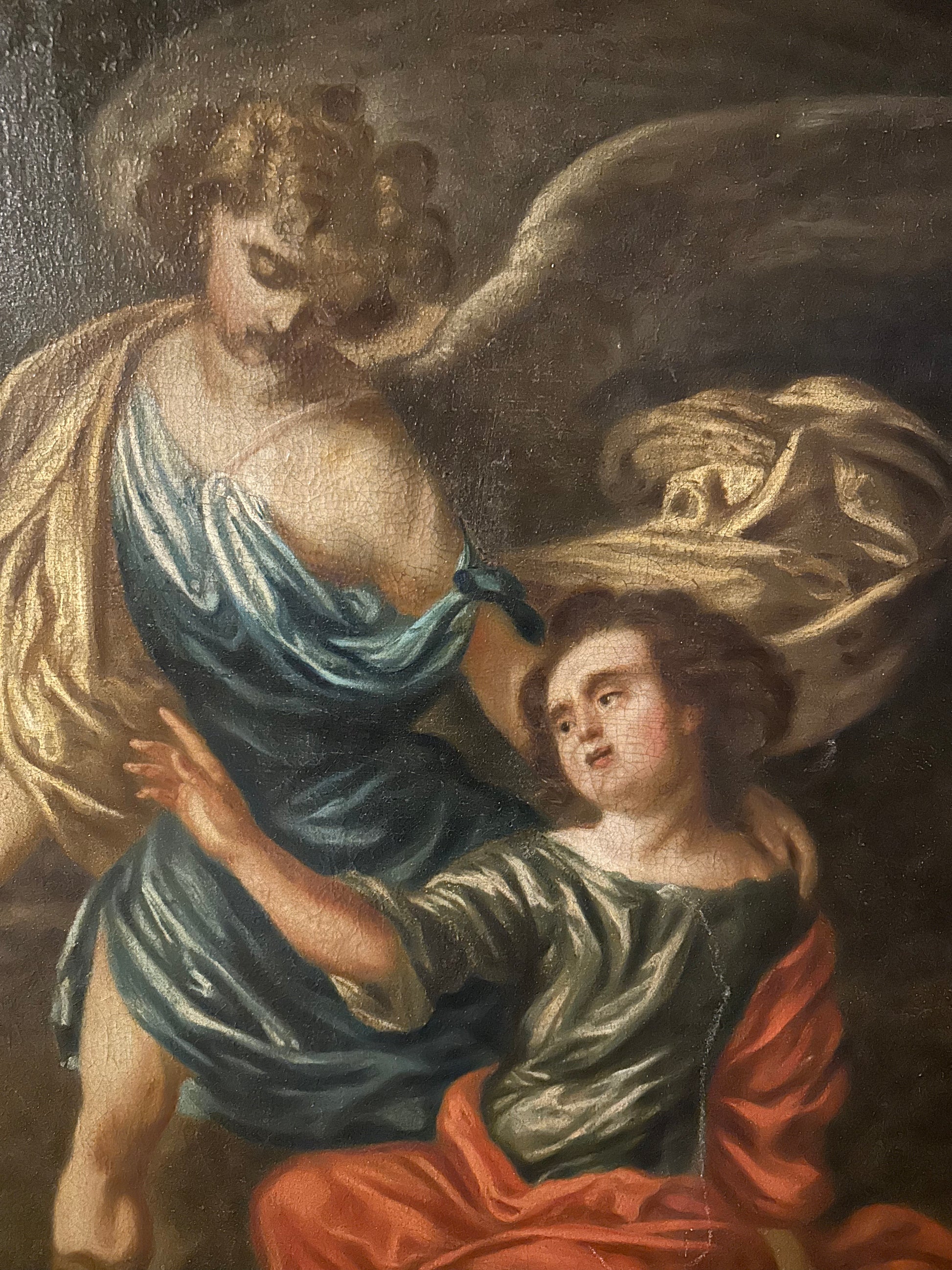 Olio Su Tela Francese del '600 Raffigurante Angelo Custode
