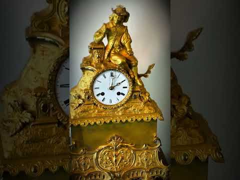 Orologio da tavolo francese di metà 1800, stile Impero, in bronzo dorato al mercurio. Raffigurato Nobiluomo con cappello.