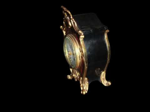 Piccolo orologio da tavolo francese di inizio 1900 stile Boulle in legno ebanizzato e fronte in tartaruga. Presenta applicazioni in bronzo sul fronte.