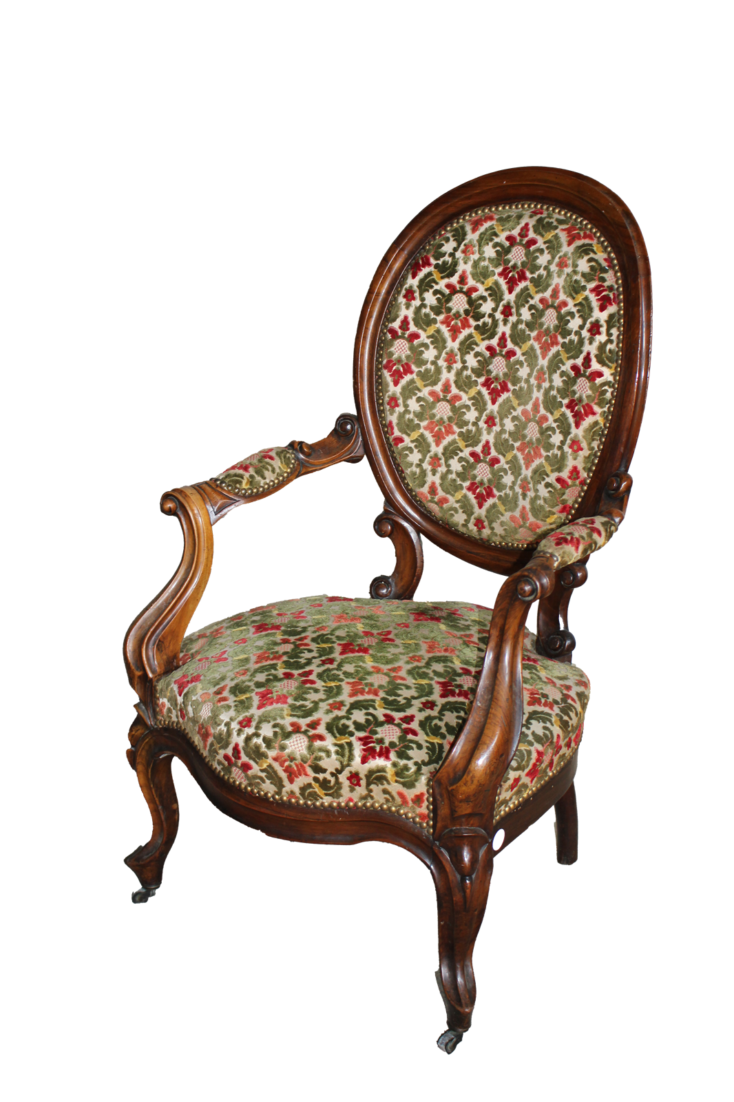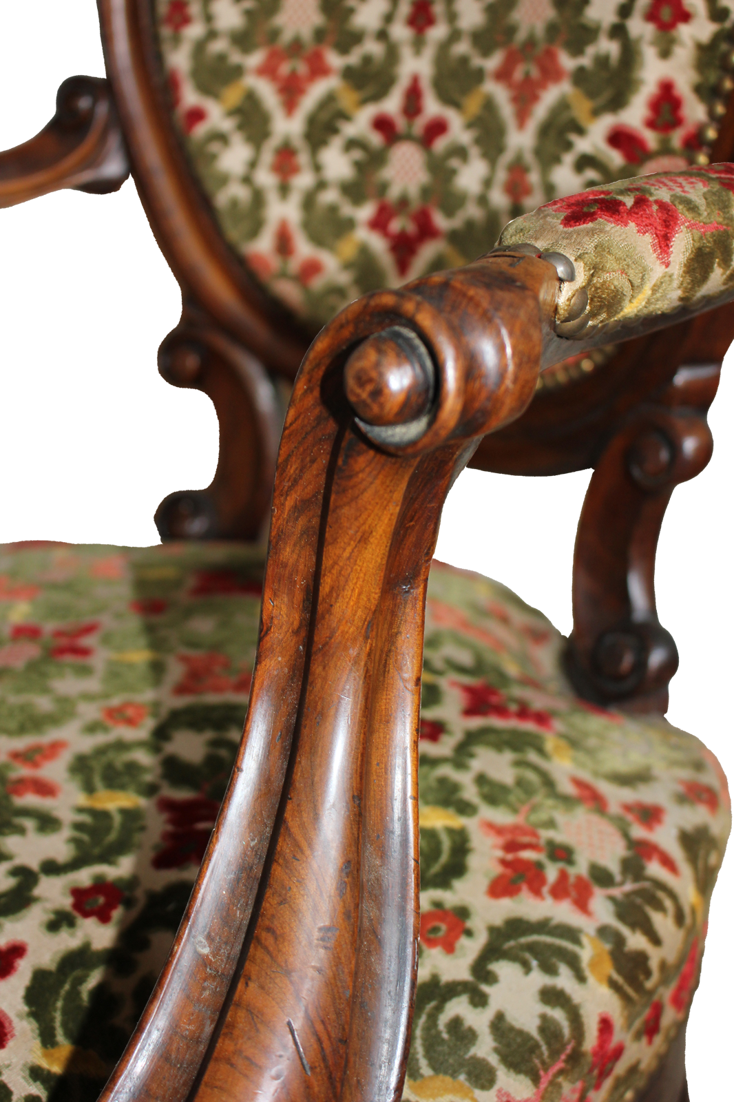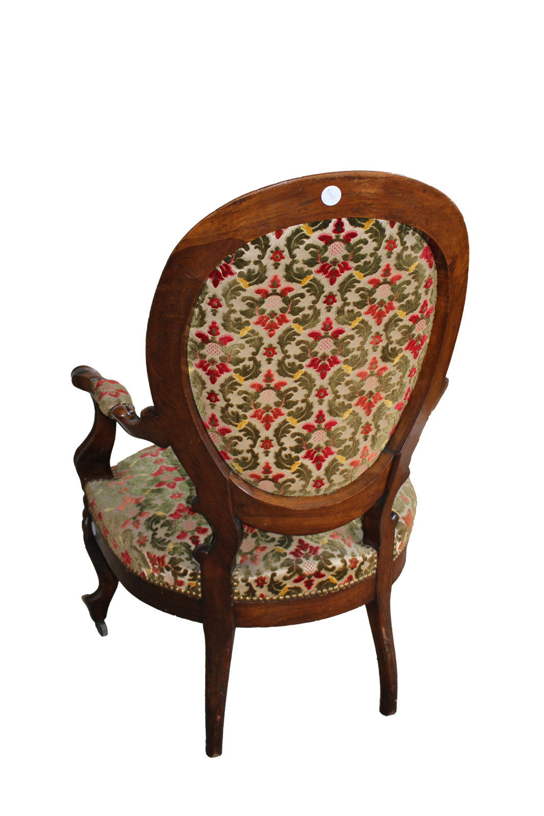 Poltrona a medaglione stile Luigi Filippo in noce - XIX secolo
