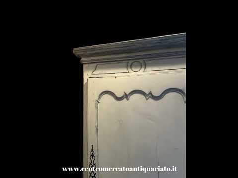 Presenta un’anta bugnata, elegante cappello superiore sagomato e caratteristici piedini a ricciolo, tipici del gusto provenzale.